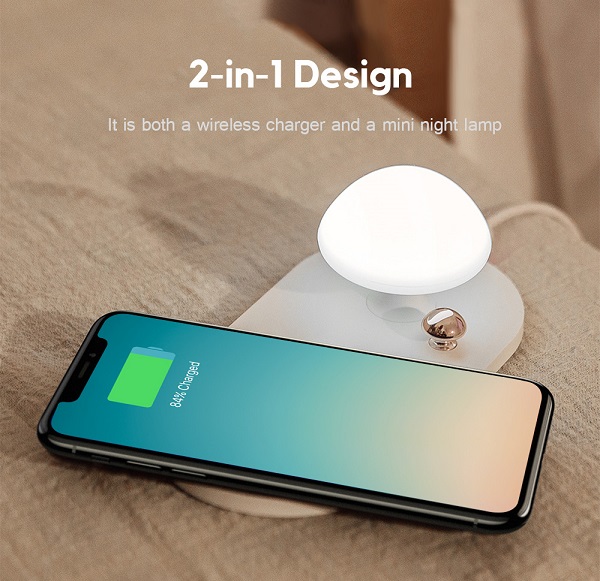 - 2-in-1 design. It is both a wireless charger and a mini night lamp.